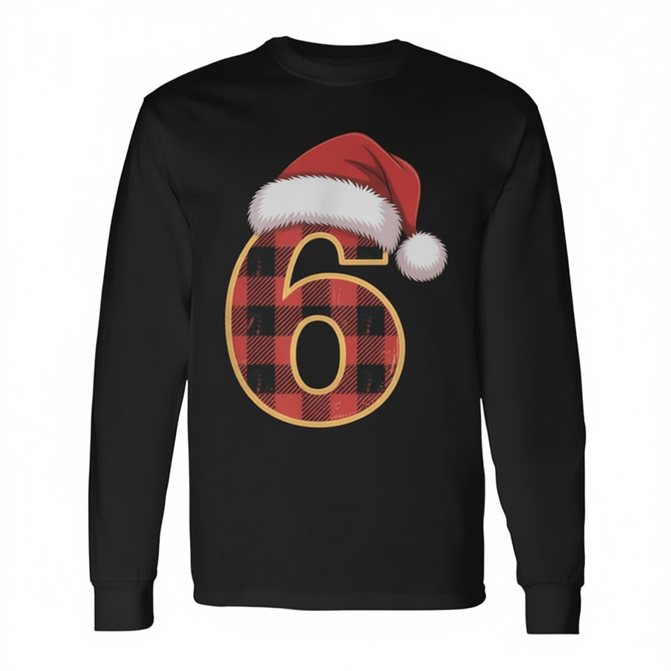 Maglietta a maniche lunghe con cappello da Babbo Natale a quadri numero 6, coordinata con i pigiami natalizi