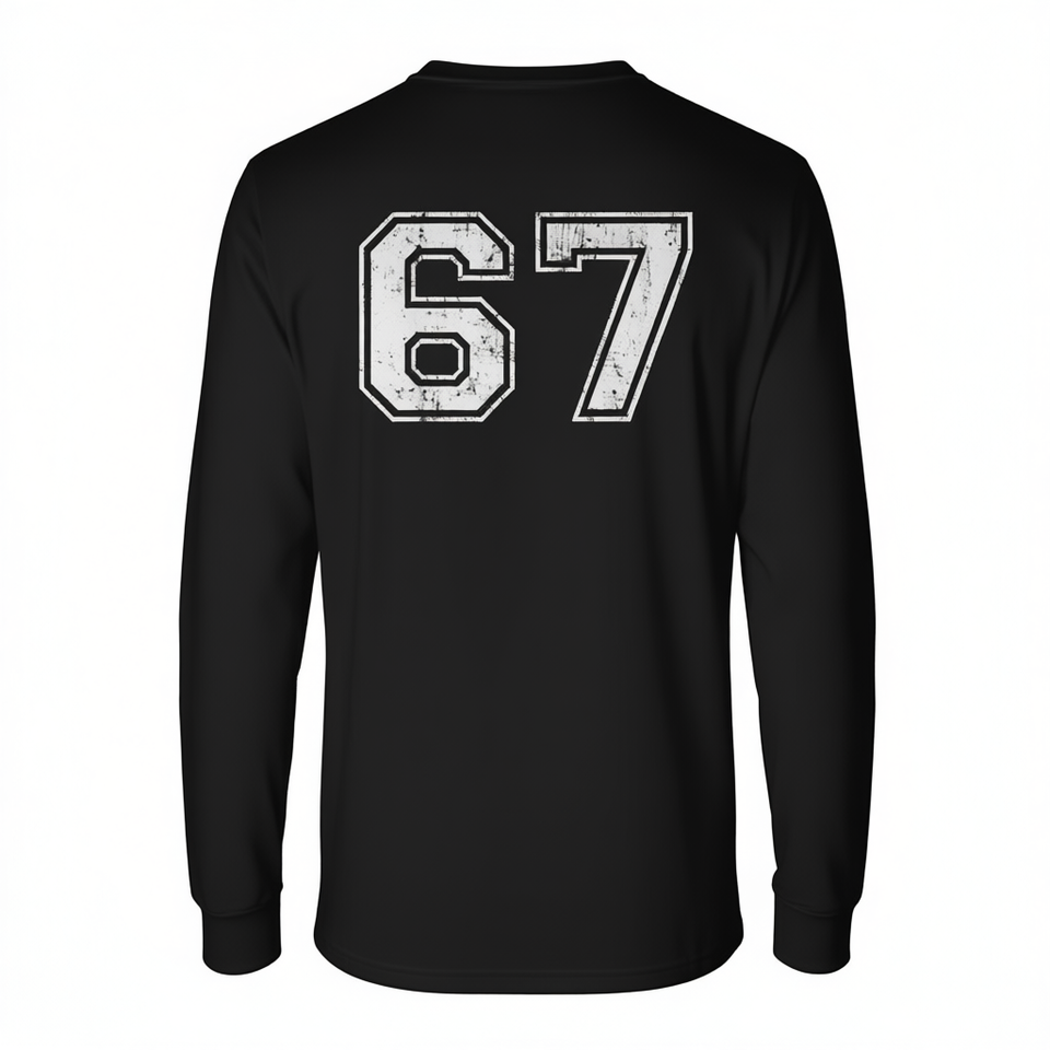 Maglietta a maniche lunghe da allenamento per squadre sportive, modello vintage distressed, numero 67