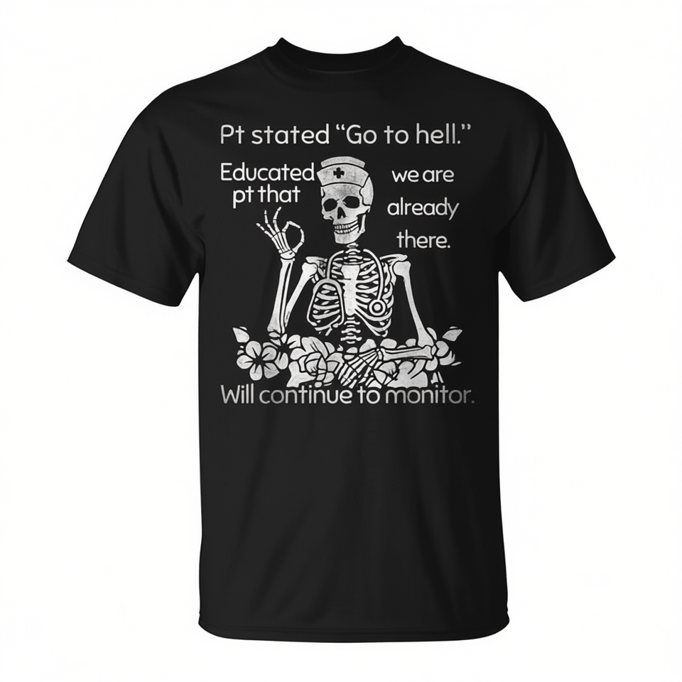 T-shirt da donna Nurse Dark Humor Skull Pt Stated nera taglia grande