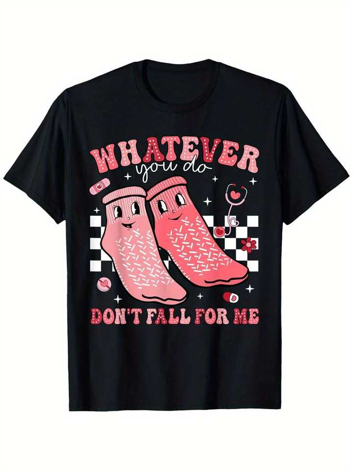 Nurse T-Shirt Don't Fall For Me Pink Feet Graphic Valentine's Day Funny Nursing Humor Loose Fit Soft Breathable Plus Size