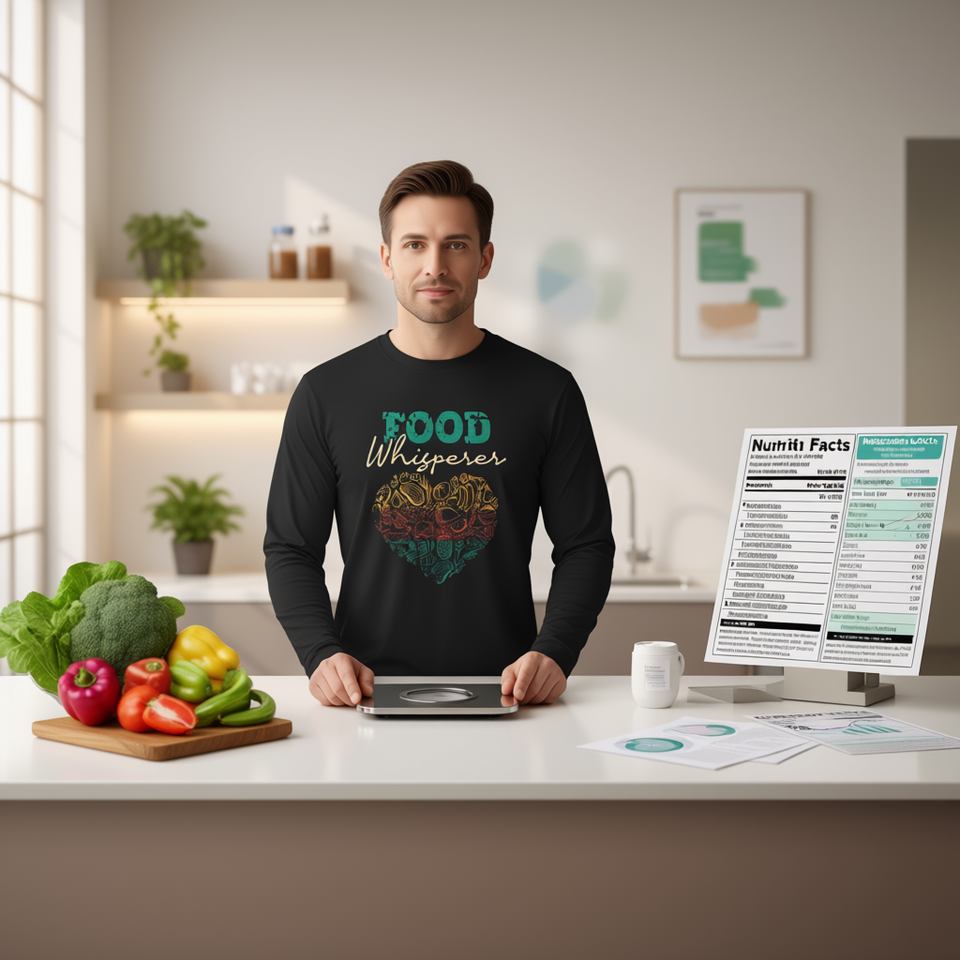 Maglietta a Maniche Lunghe per Adulti Unisex, Girocollo in Cotone, Tema Nutrizione e Benessere, Top per uno Stile di Vita Sano