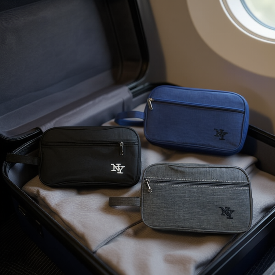Borsa per il Trucco da Uomo Ricamata Ny 25x14x7.5Cm, Custodia da Viaggio e per Uso Quotidiano