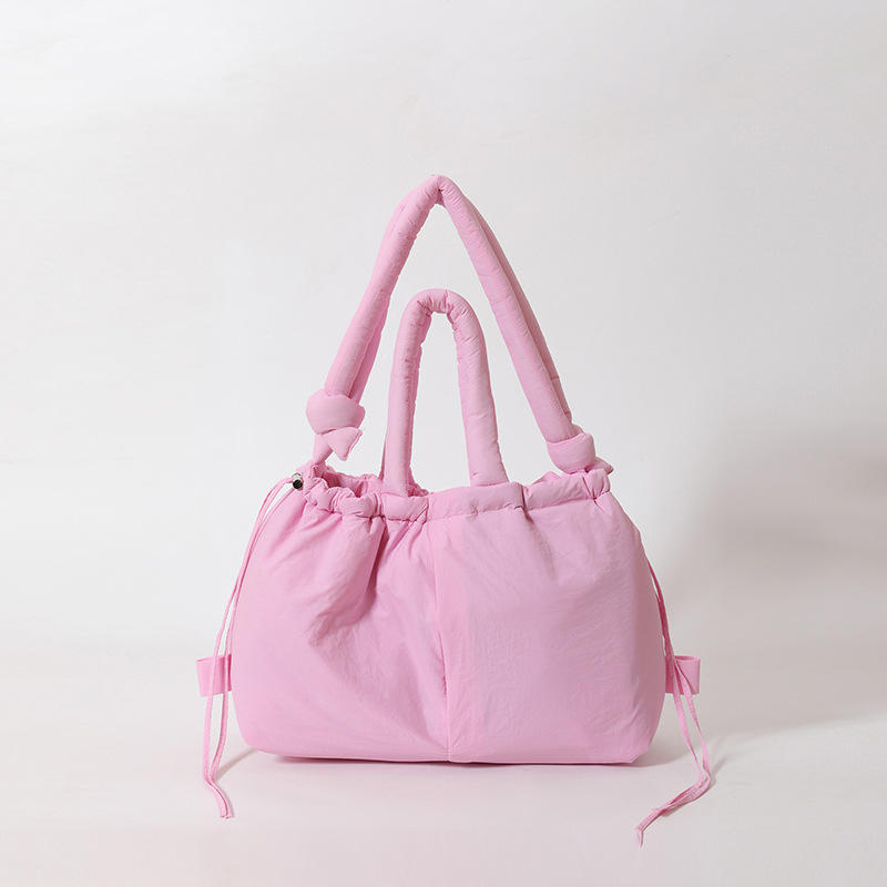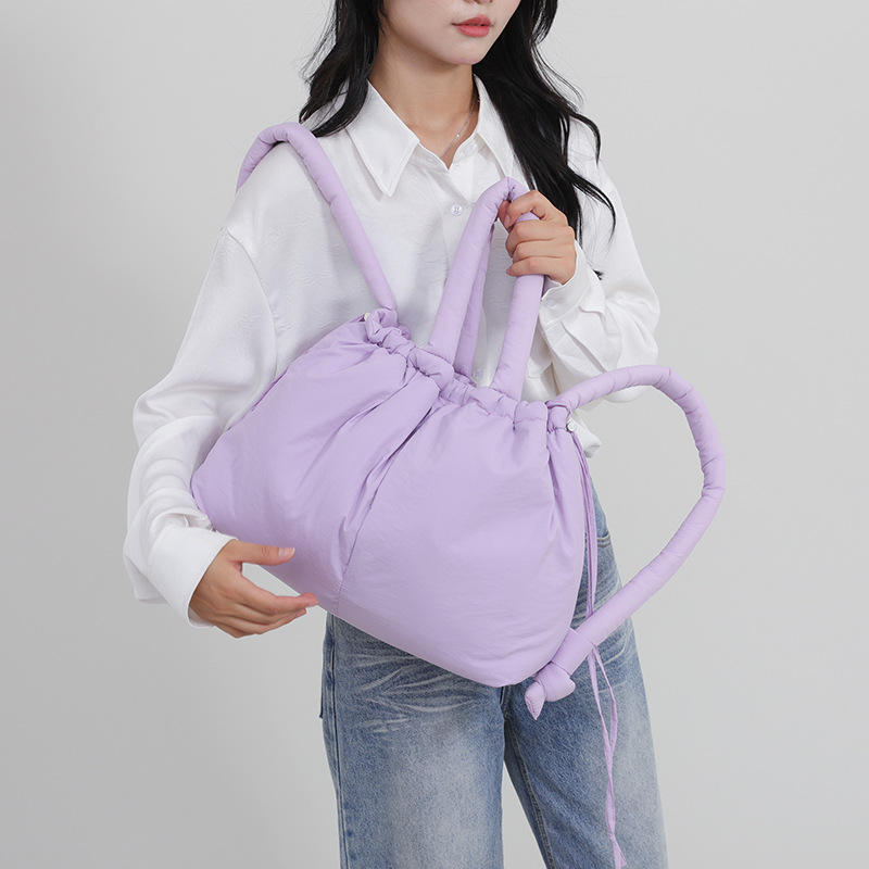 Borse a tracolla da donna in nylon con coulisse, leggere, tinta unita, borse a spalla tote da donna, semplici borse a secchiello da donna, zaino