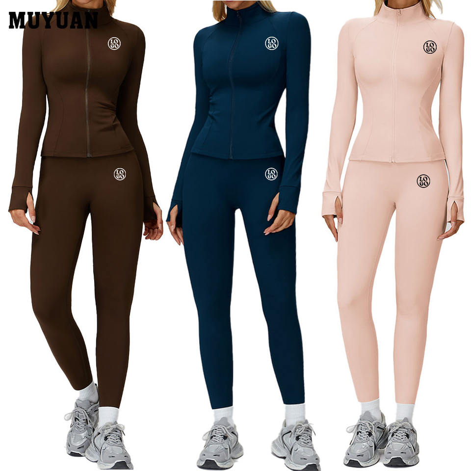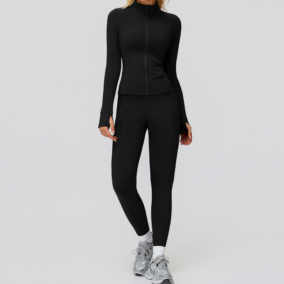 Nylon Spandex Women's Jacket and Leggings Set Winter Thermal Quick-Dry Running Gym Fitness Outfits for Outdoor Sports