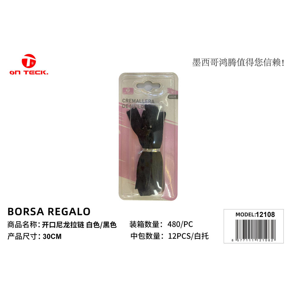 Cerniera in nylon 5 # Filo da Cucito Nero Durevole da 30 Cm Senza Blocco per Uso Artigianale