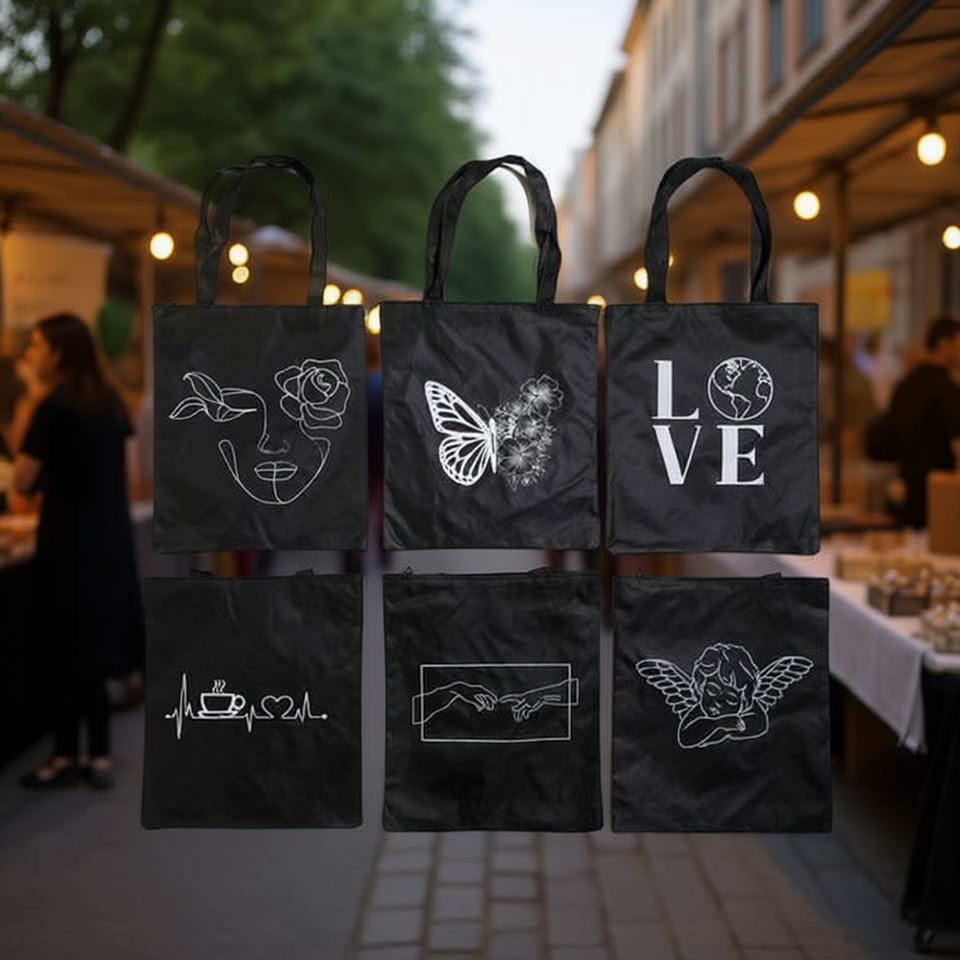 Nz Promotional Tote Bag 32x37cm Black Printed Cloth Bag With Art Design For Gifts And Events