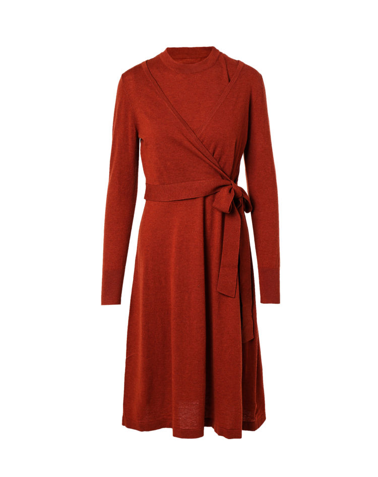 O-Neck Belted Sweater Dress Women Fashion Office Lady Sashes Burgundy Knitted Dress