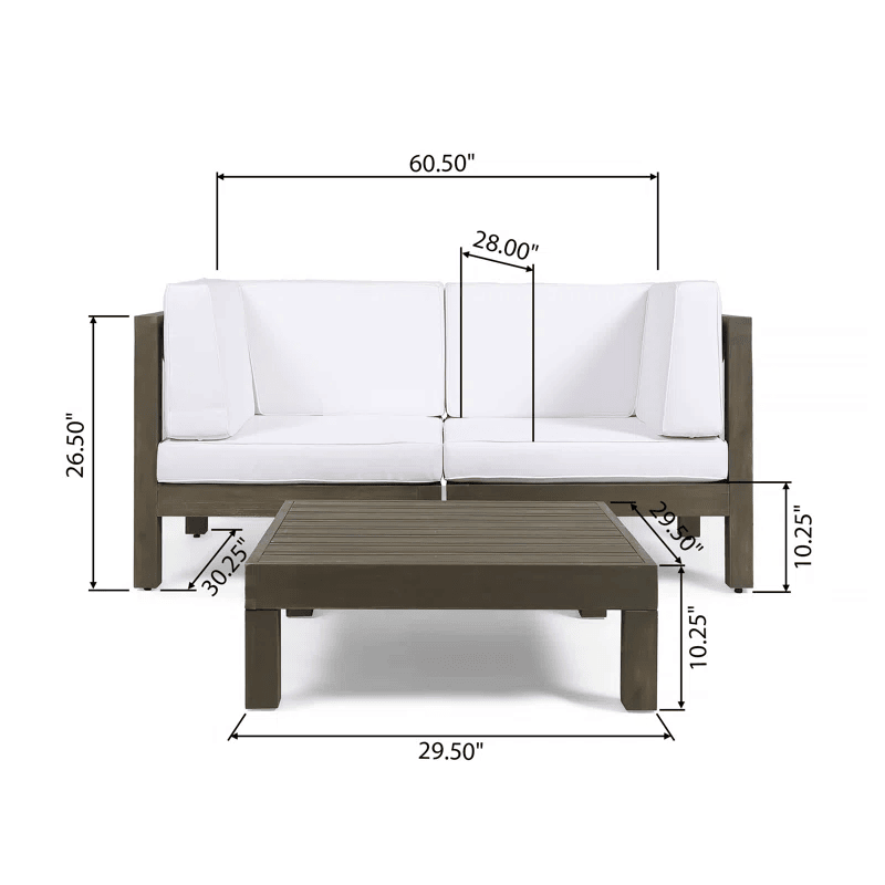 Set da Giardino OANA in 3 Pezzi, Divanetto Bianco con Tavolino