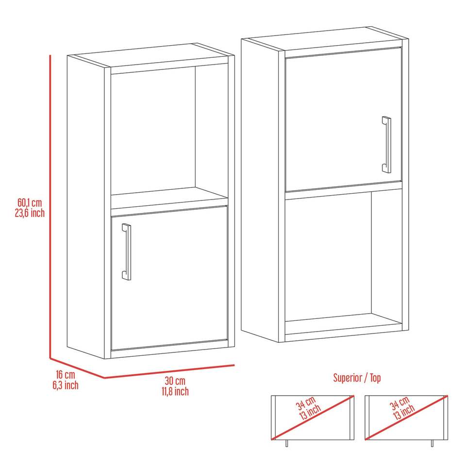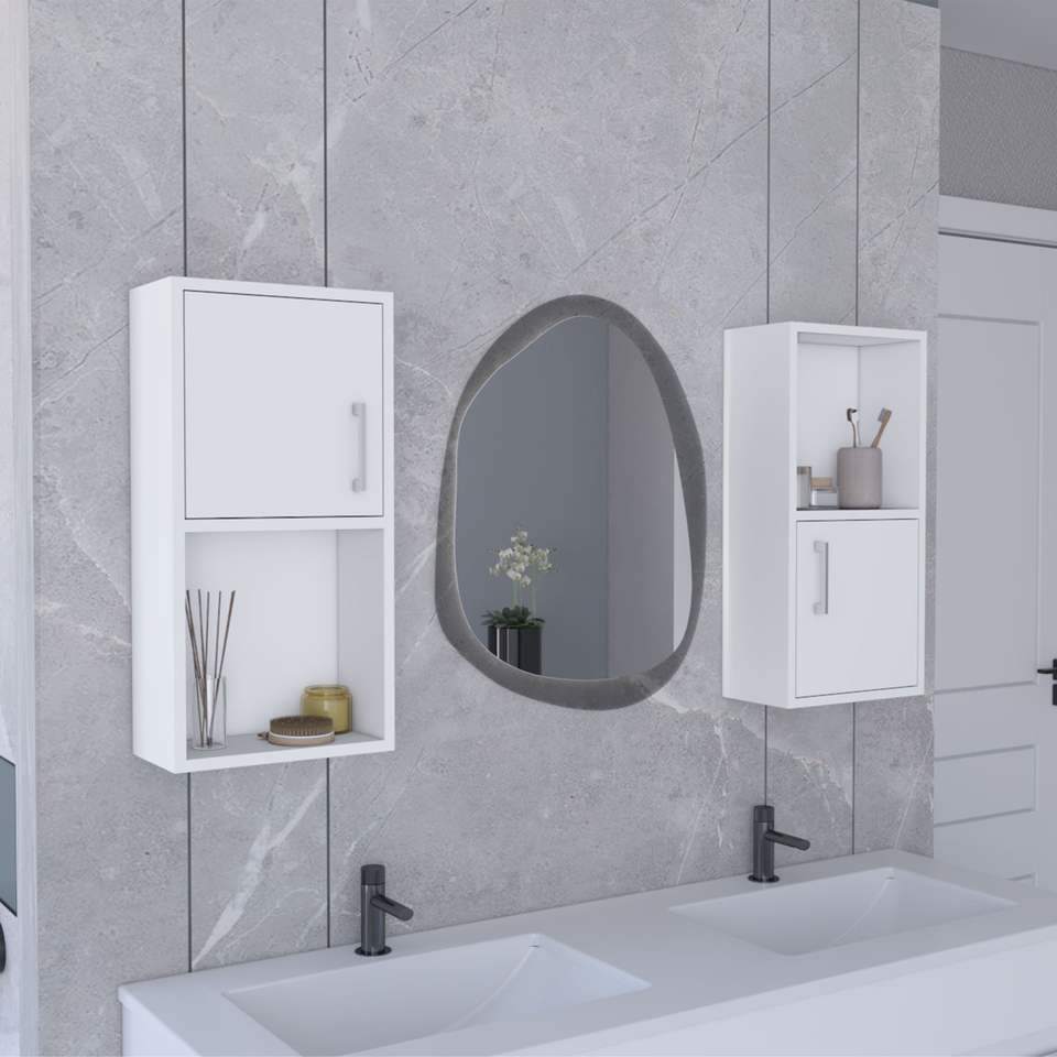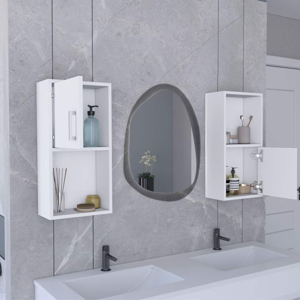 Armadietto da Bagno OBA a 2 Pezzi Montato a Parete con Ripiani Aperti e Chiusi per Stoccaggio