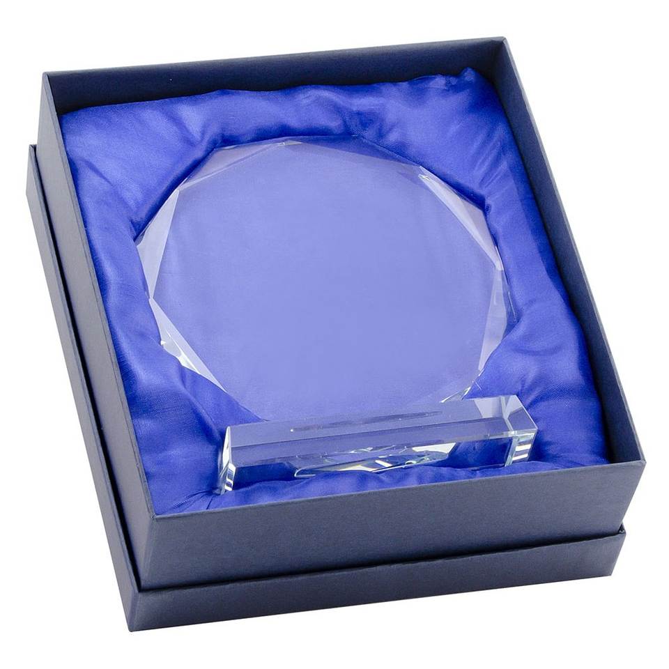 OCTAGONAL TROPHY 130mm Glass and Metal UV Printed with Custom Graphics for Trade Shows and Welcoming Guests