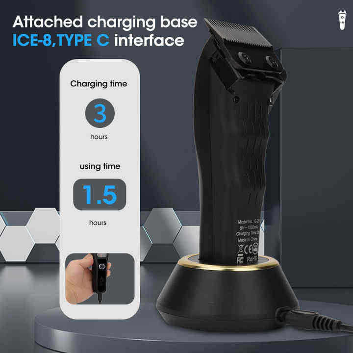 Tagliacapelli Professionale ODM con Motore Magnetico da 9500RPM, Lama 5cr DLC, Base di Ricarica e Cover Sostituibile