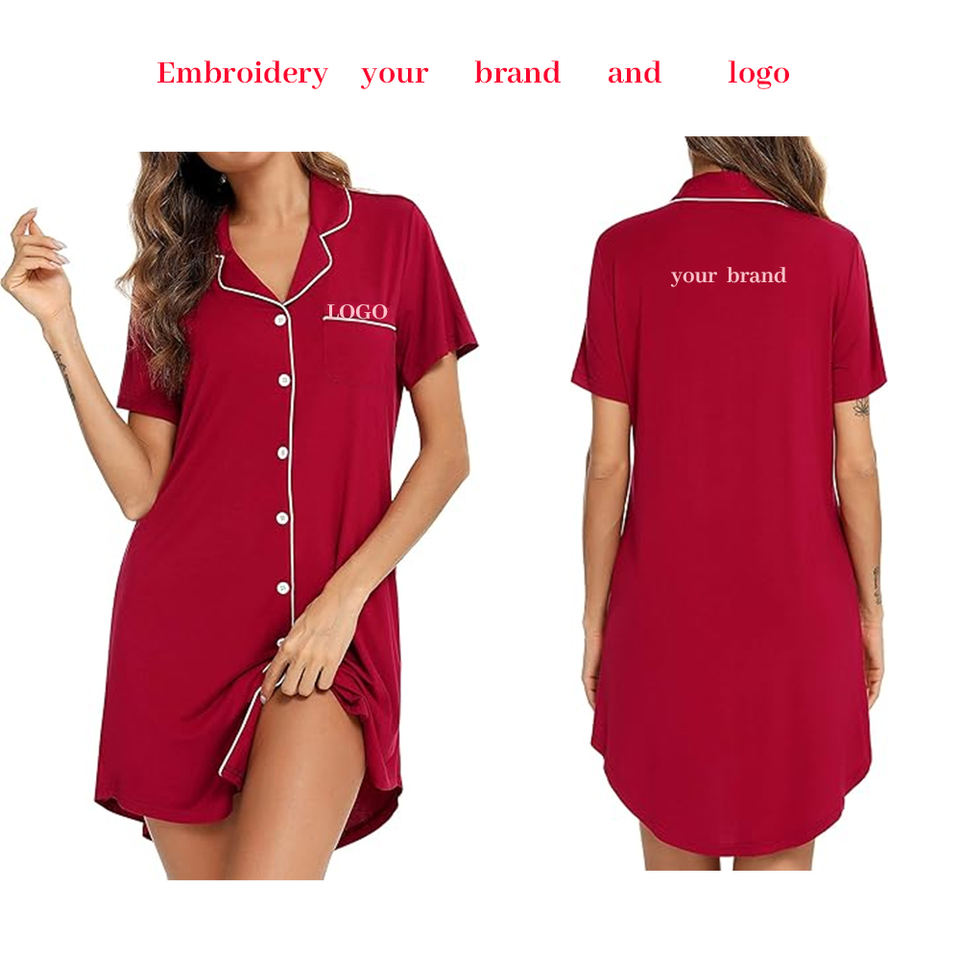 ODM personalizzato ricamo logo pigiama camicia da notte per le donne breve/manica lunga con bottoni verso il basso camicia da notte infermiera dormiente