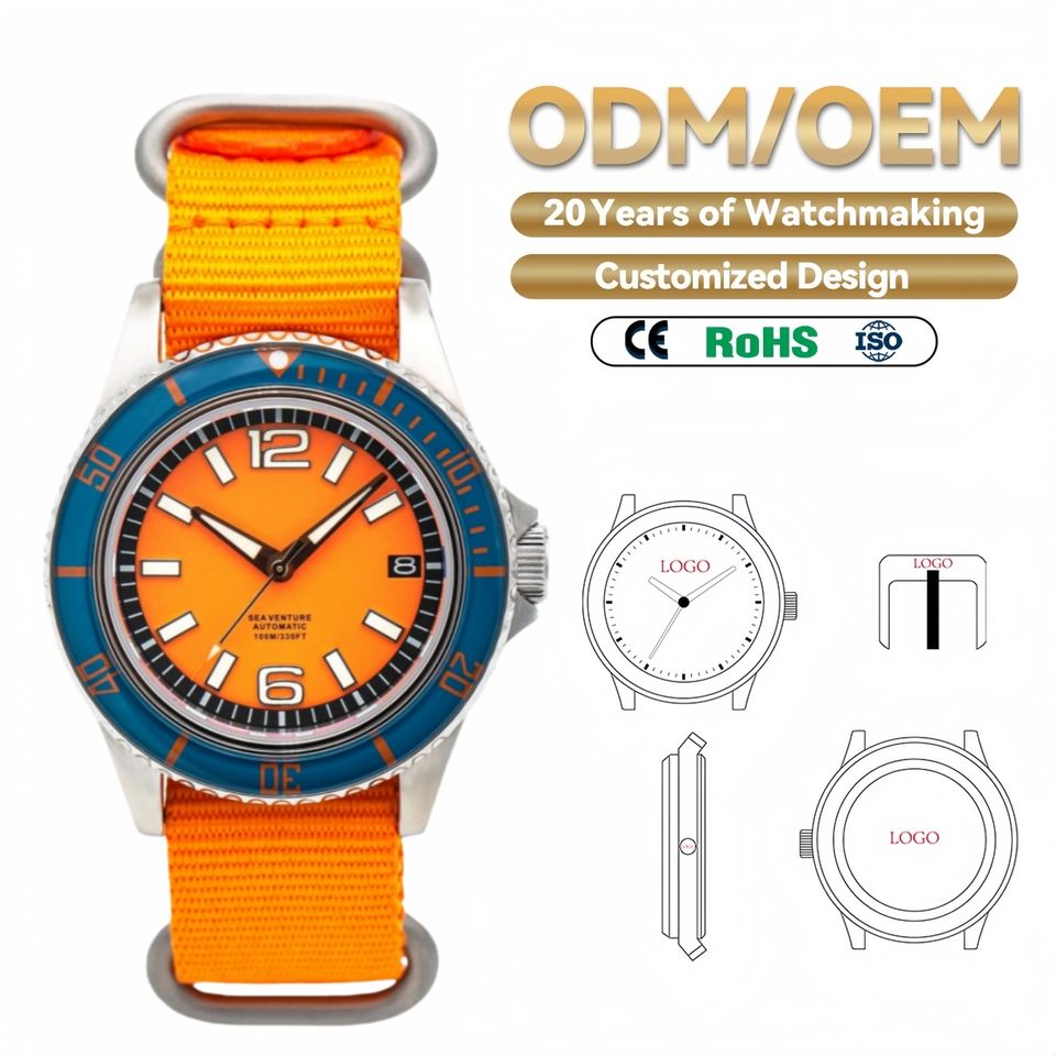 Orologio Meccanico Personalizzato con Movimento NH35A, Etichetta Privata, Orologio da Polso Casual da Uomo Blu con Cristallo K1 Temprato