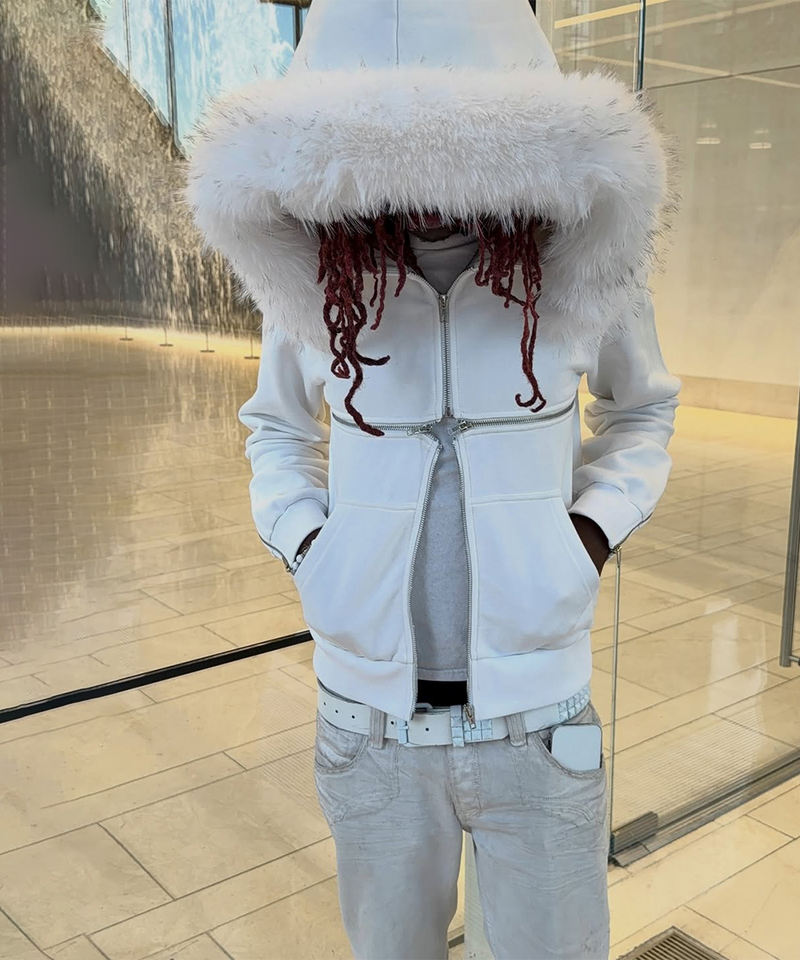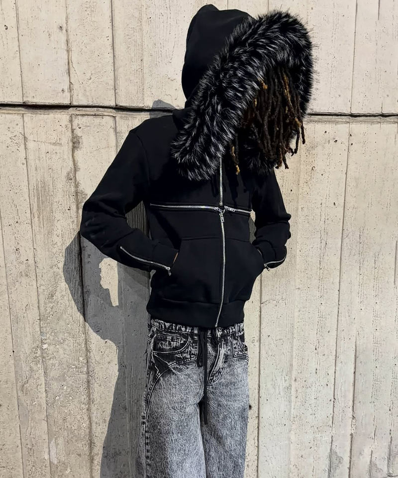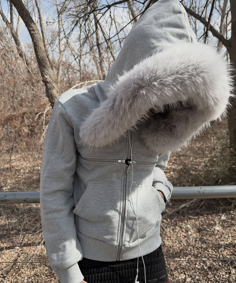 Felpa con Cappuccio e Doppia Cerniera in Pelliccia Stile Vintage Personalizzata ODM&OEM - Felpa Oversize Grigia con Zip per Uomo