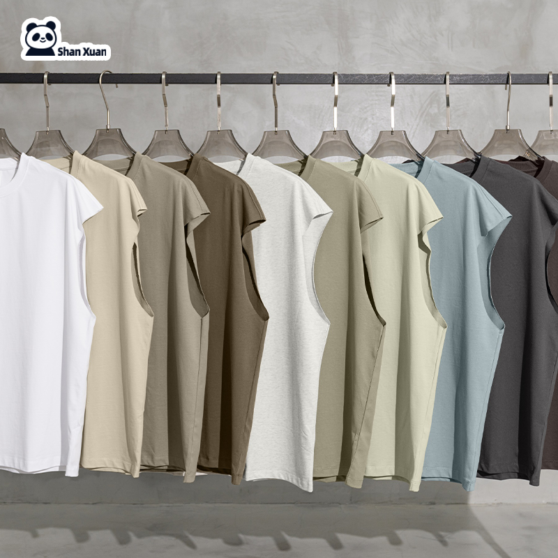 ODM OEM Men's Custom Logo Printed Design 100% Cotton 305gsm Heavy Weight Oversized Sleevesless T Shirt High Fashion Tank Long