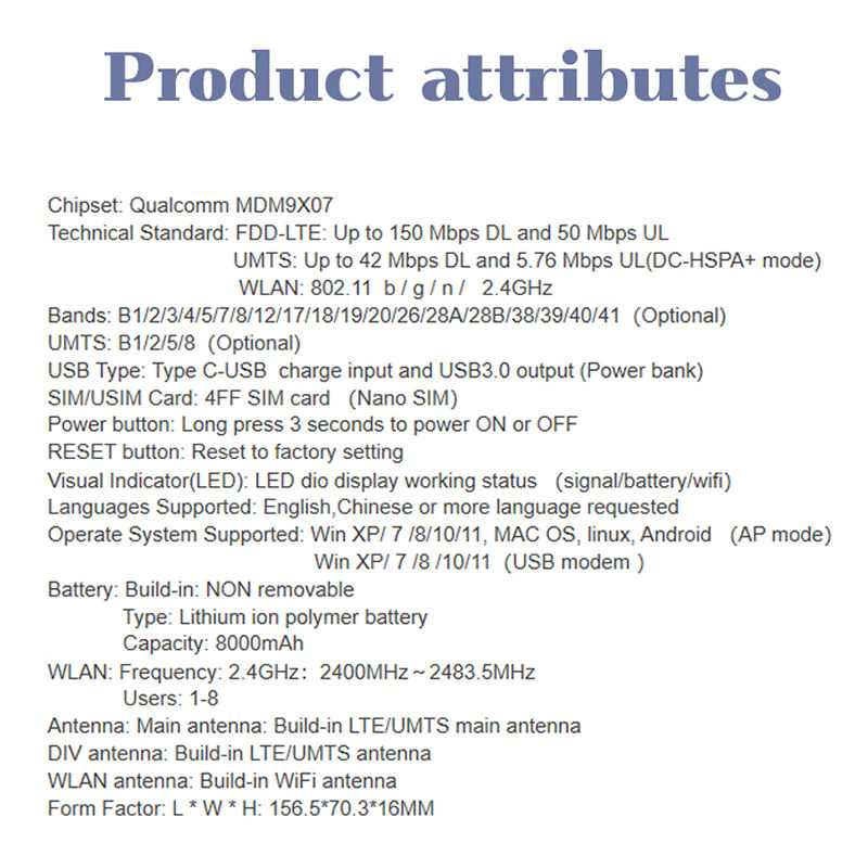 ODM OEM piccolo e leggero per le bande globali di viaggio 4G Mini Router Wifi portatile Wireless Hotspot Modem 4g Lte Sim Card