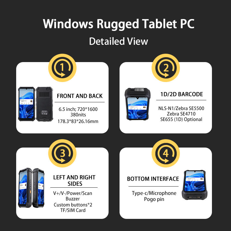 Computer Portatile Industriale Robusto e Impermeabile ODM/OEM, Dispositivo PDA Windows con Scanner di Codici a Barre 2D, NFC, Windows 11 Pro