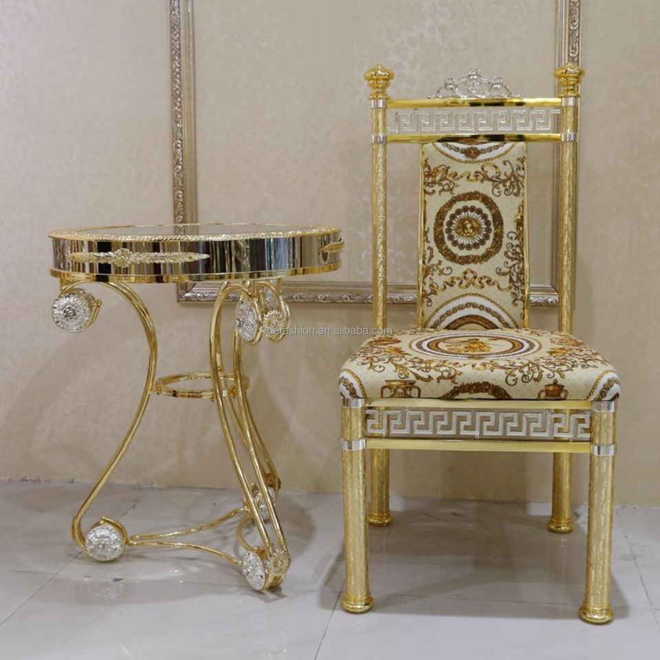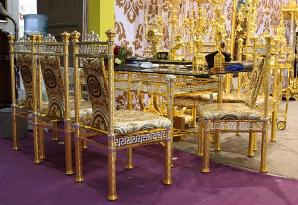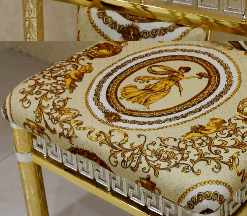 Sedia da Pranzo in Stile Barocco Italiano OE-FASHION, in Lega di Ottone Placcata Oro K e Argento, con Tessuto Beige per Soggiorno Europeo