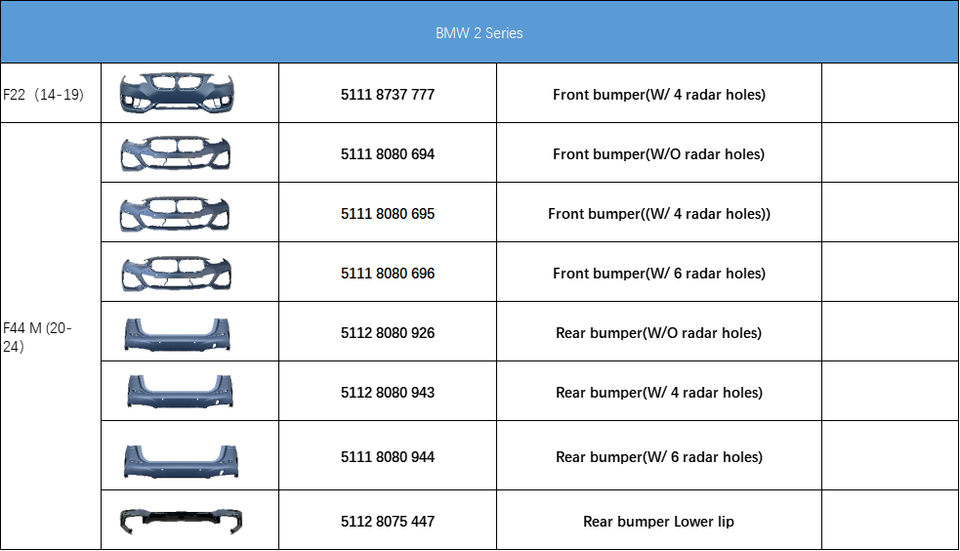 Copertura Paraurti Posteriore Stile OE Senza Fori 51128080926 per BMW Serie 2 F44, Ricambio