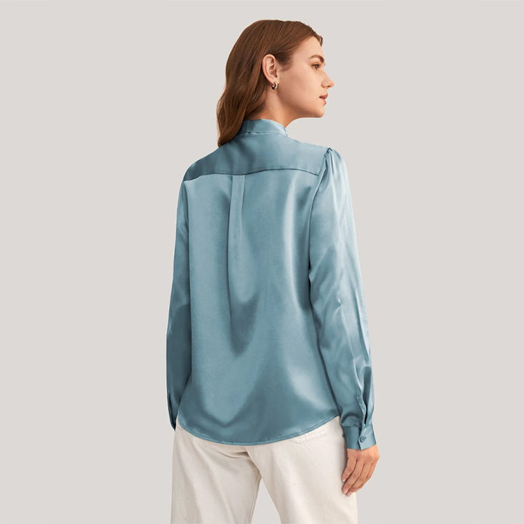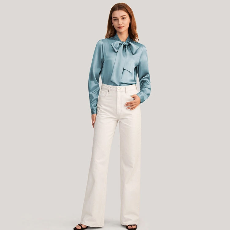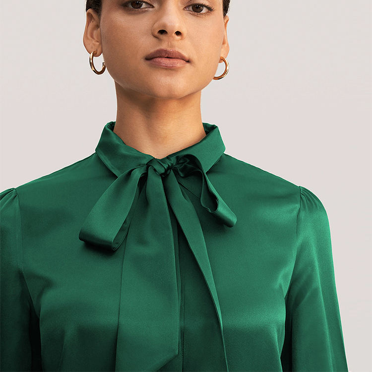 Camicia da Donna in Seta Charmeuse 19 Momme con Fiocco al Collo OEKO-TEX, Blusa da Donna 100% Pura Seta di Gelso