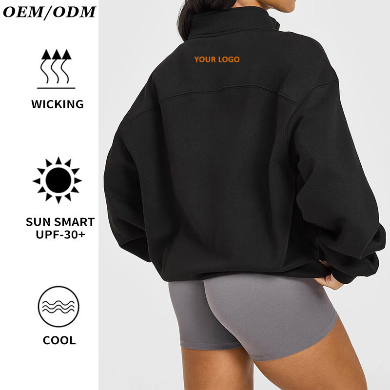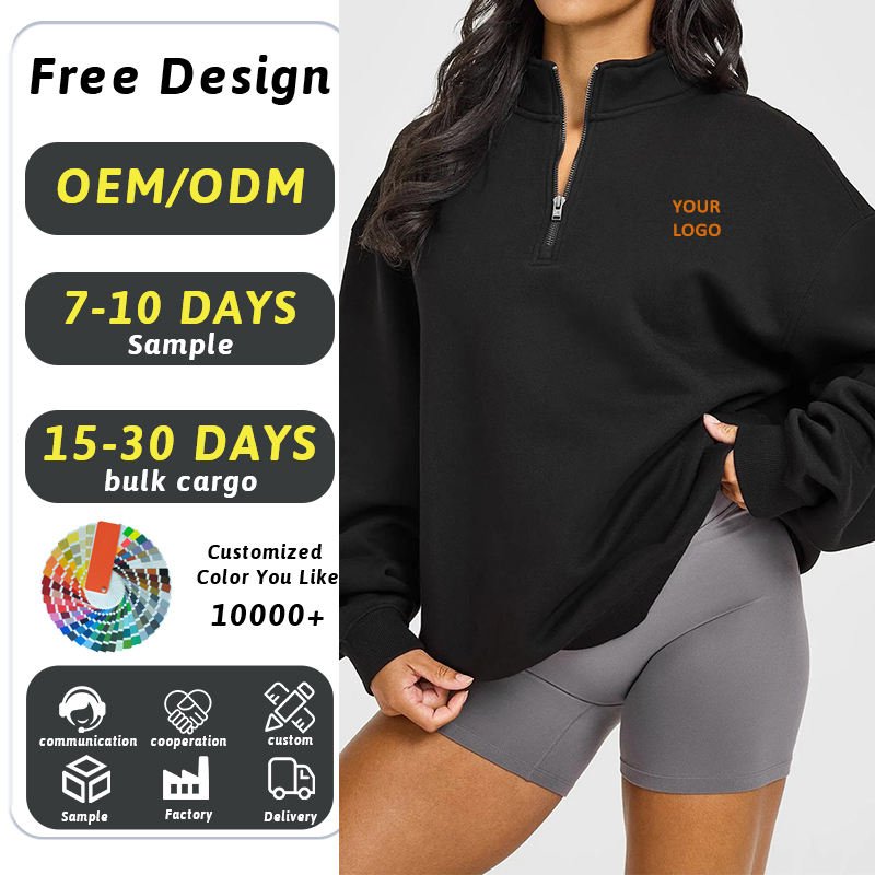 OEM 1/4 Zipper Golf Pullover Oversize Cotton Hoodie Plain Turtleneck Unisex Crew Quarter Half Zip Sweatshirt for Women