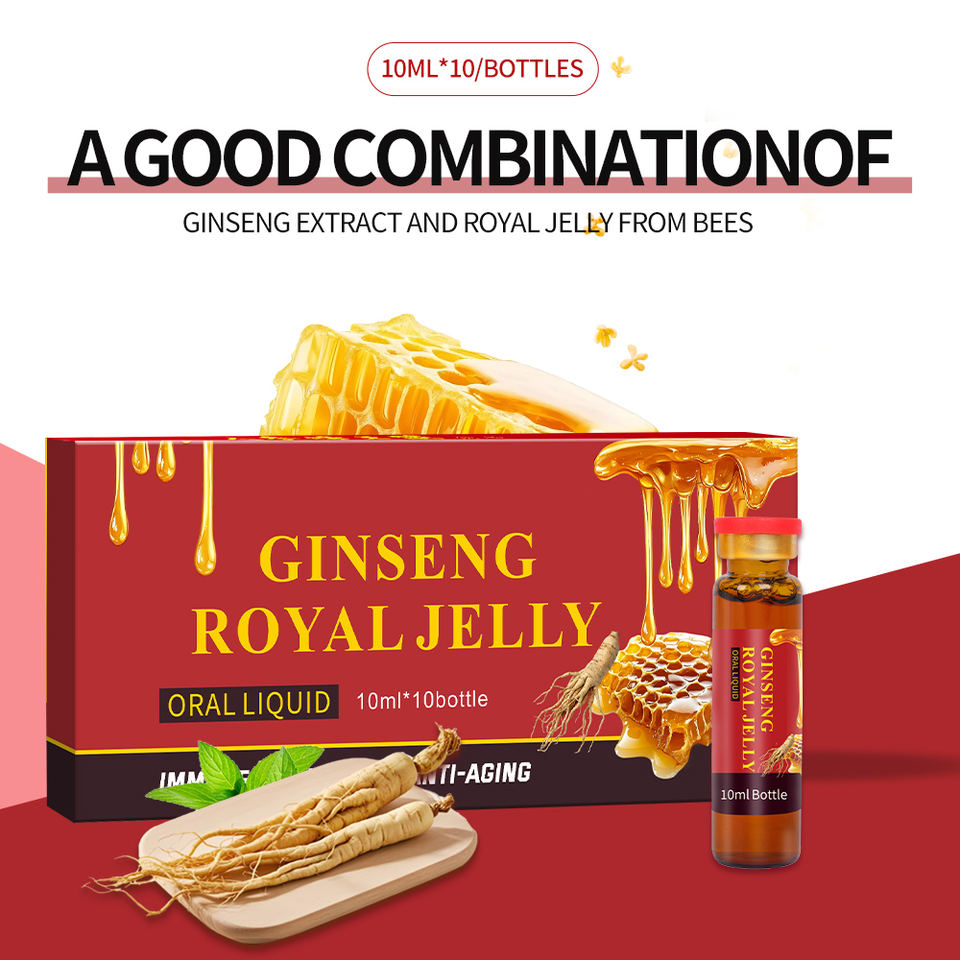 OEM 10ml Solution Ginseng Royal Jelly Oral Liquid Immunity Supplement Provide Energy Health Drink