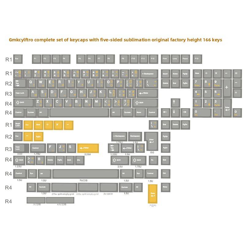 Set completo OEM 166-Key Keycap tinta semplice con profilo Cherry per tastiera meccanica per sublimazione Modulare spazio Keycap PBT