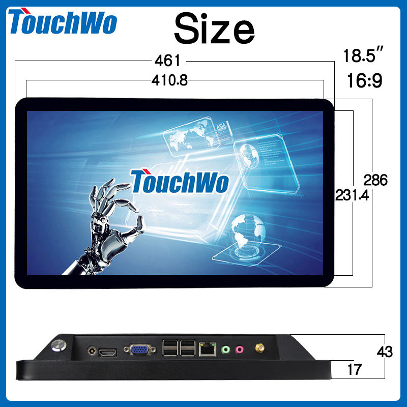 OEM 18.5 pollice schermo di Tocco AIO computer con vga porta usb del pc industriale desktop del computer portatile intel core i3
