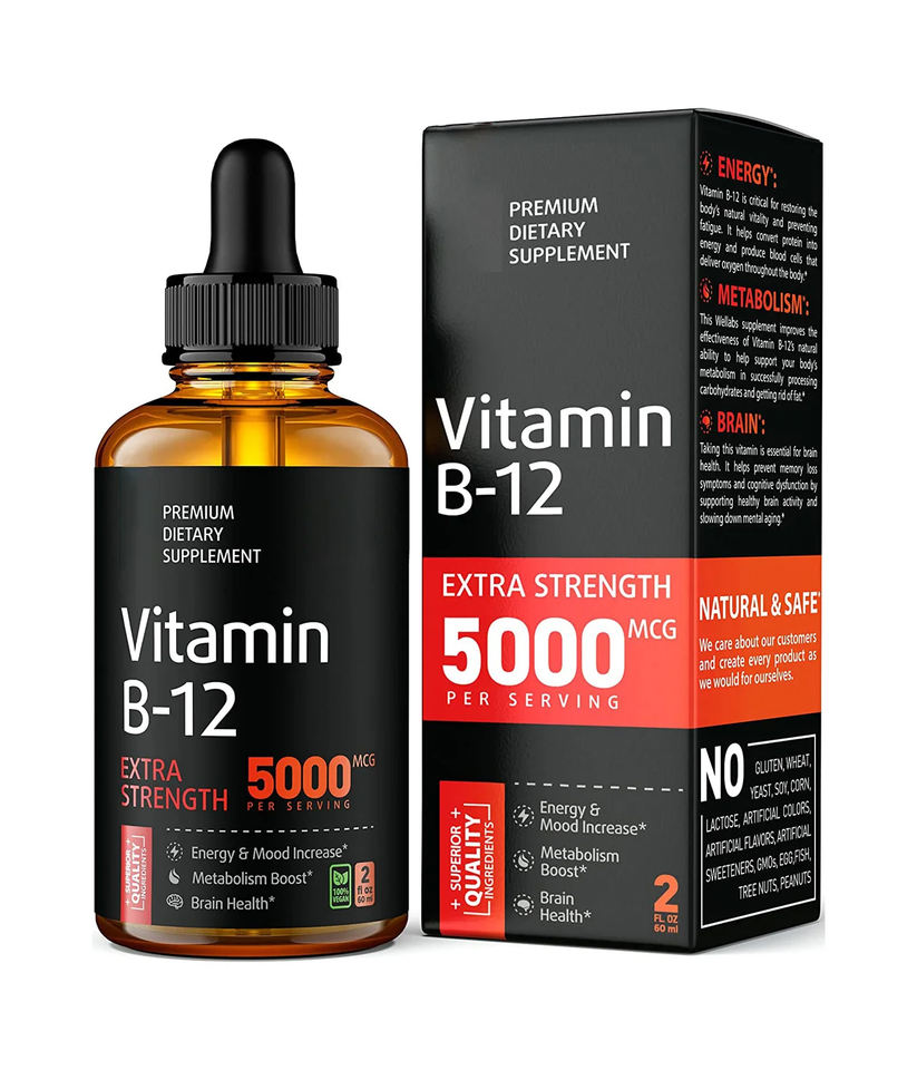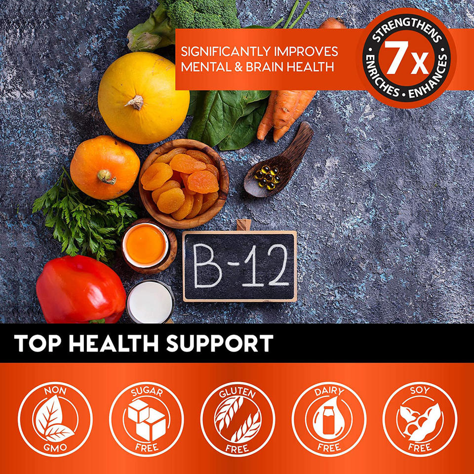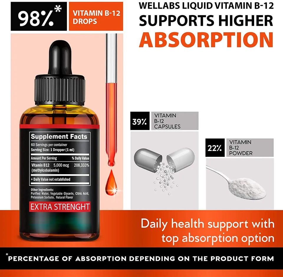 5000 MCG B12: High concentration of 5000 MCG Vitamin B12 per dose supports energy production and immune function.