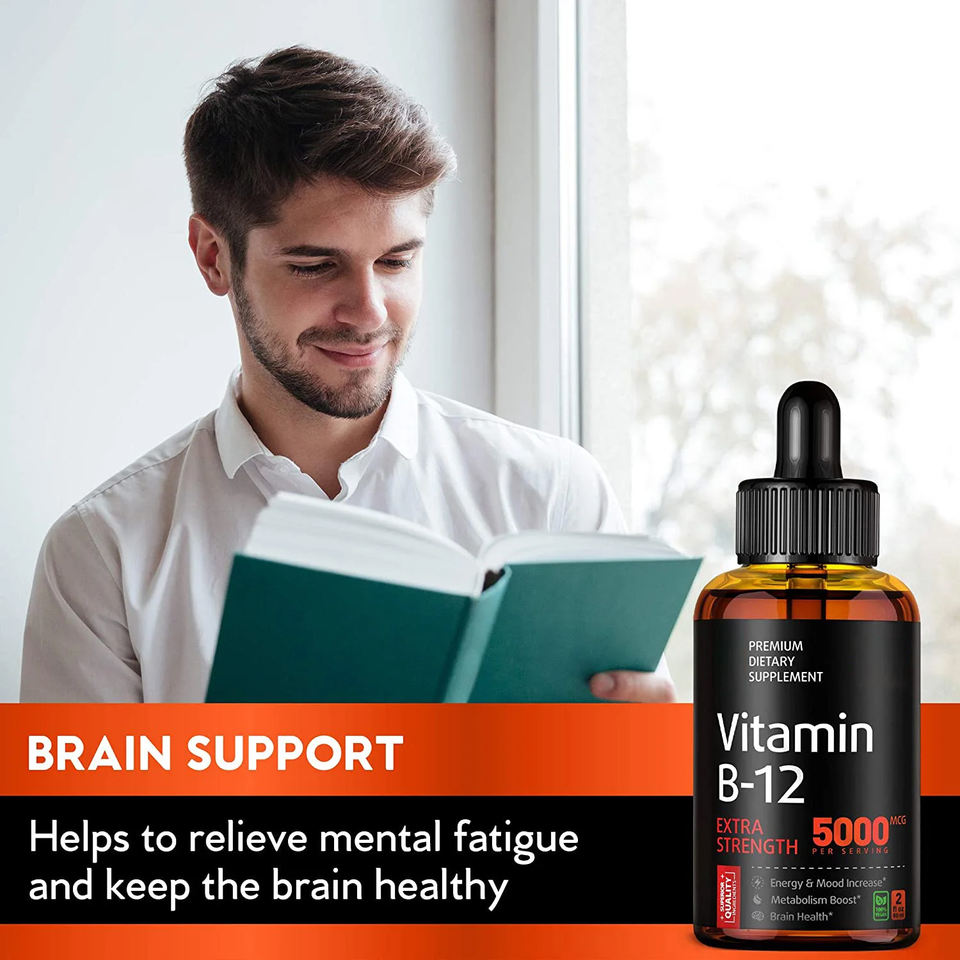 OEM 5000 MCG Vitamin B12 Drops Vegetarian Sublingual Liquid Supplement with Licorice Extract Available in Bottle Drum Packaging