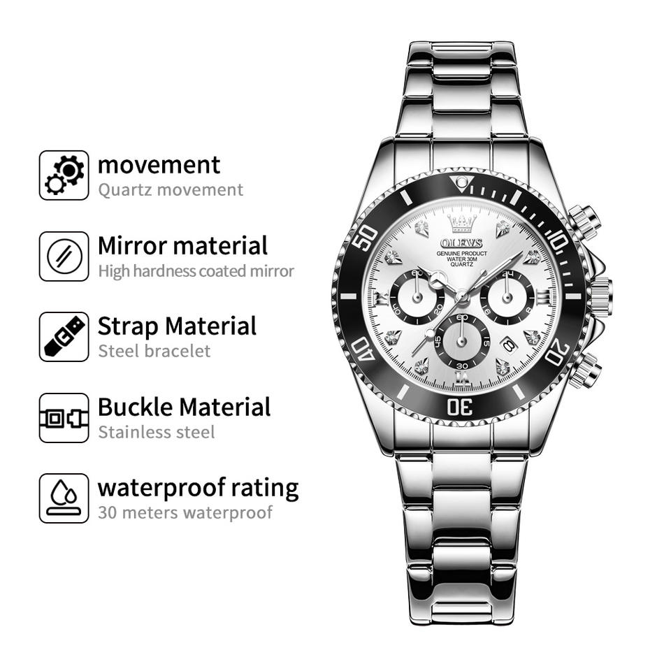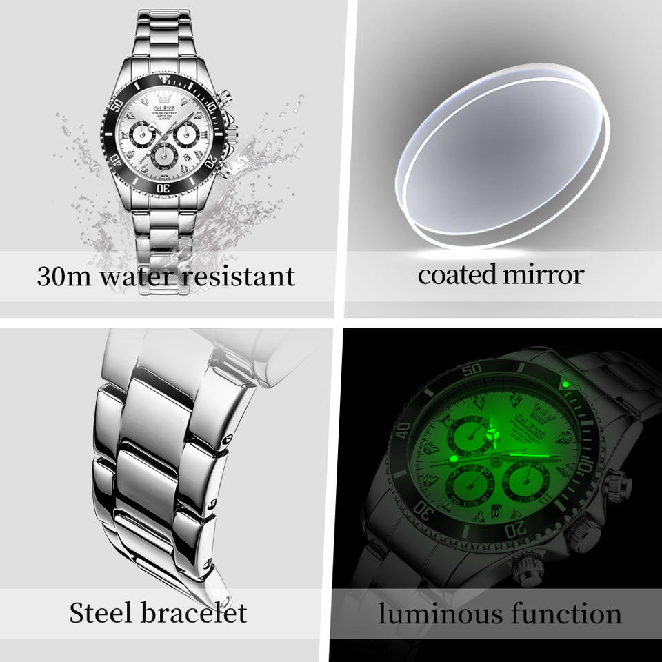Orologio al Quarzo OEM 5632 da Donna, Quadrante Verde Classico, Cassa in Acciaio Inossidabile, Impermeabile, Cronografo di Lusso per Affari