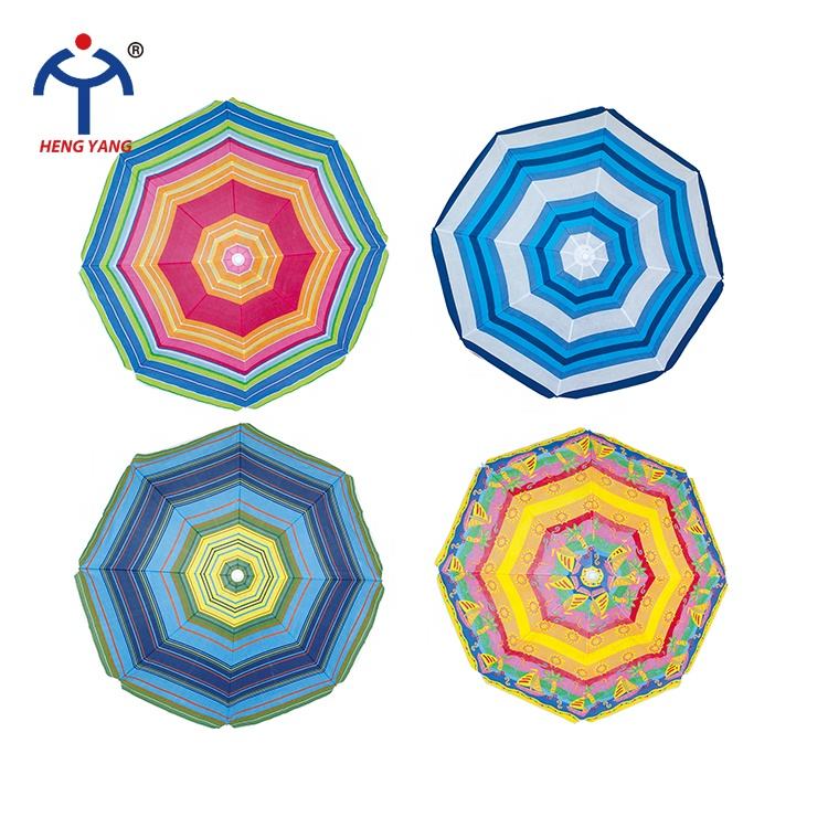 Ombrello da spiaggia OEM stampato promozione facile da usare impermeabile a strisce colore portatile UV 50 + ombrello da esterno personalizzato