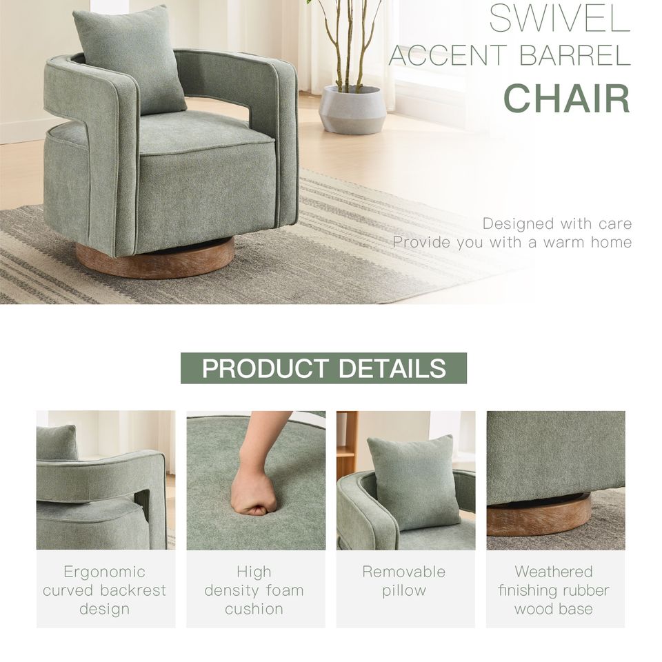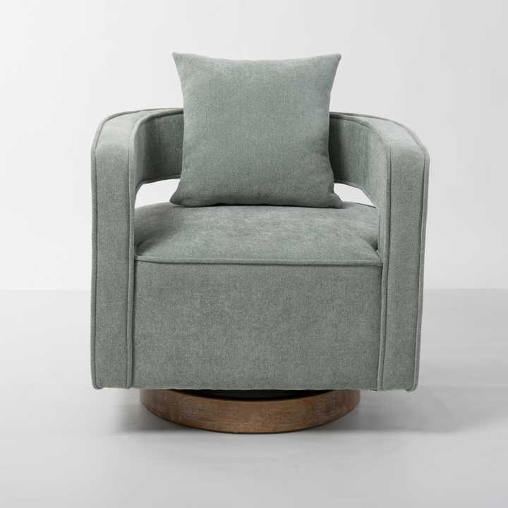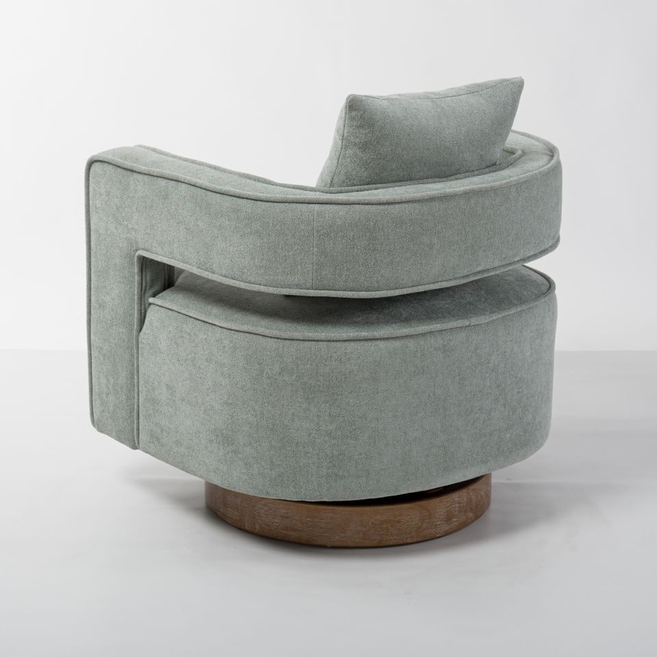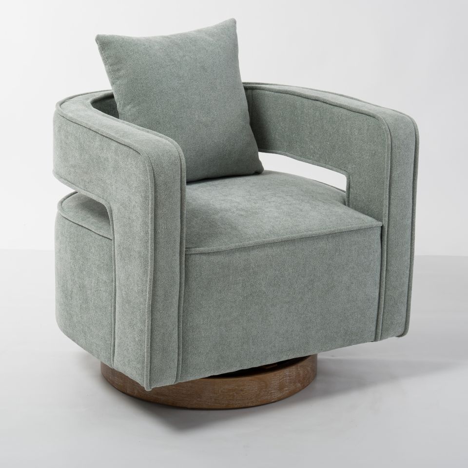 Poltrona Moderna Girevole OEM in Ciniglia con Gambe in Legno e Schienale Imbottito per Soggiorno