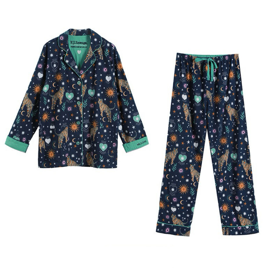 OEM pigiama a due pezzi in raso di cotone 100% personalizzato a manica lunga per donna morbida levigatura indumenti da notte elasticizzati in vita