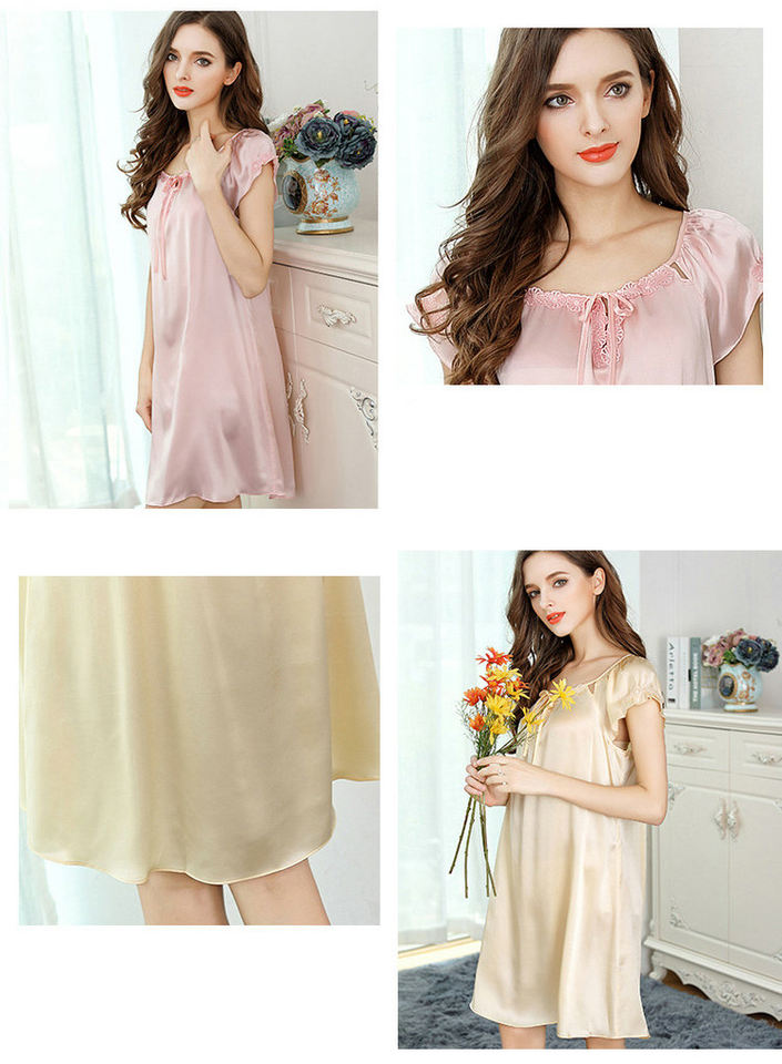 OEM 100% personalizzato camicia da notte in raso di seta di gelso a maniche corte vestaglia femminile per l'estate e la primavera