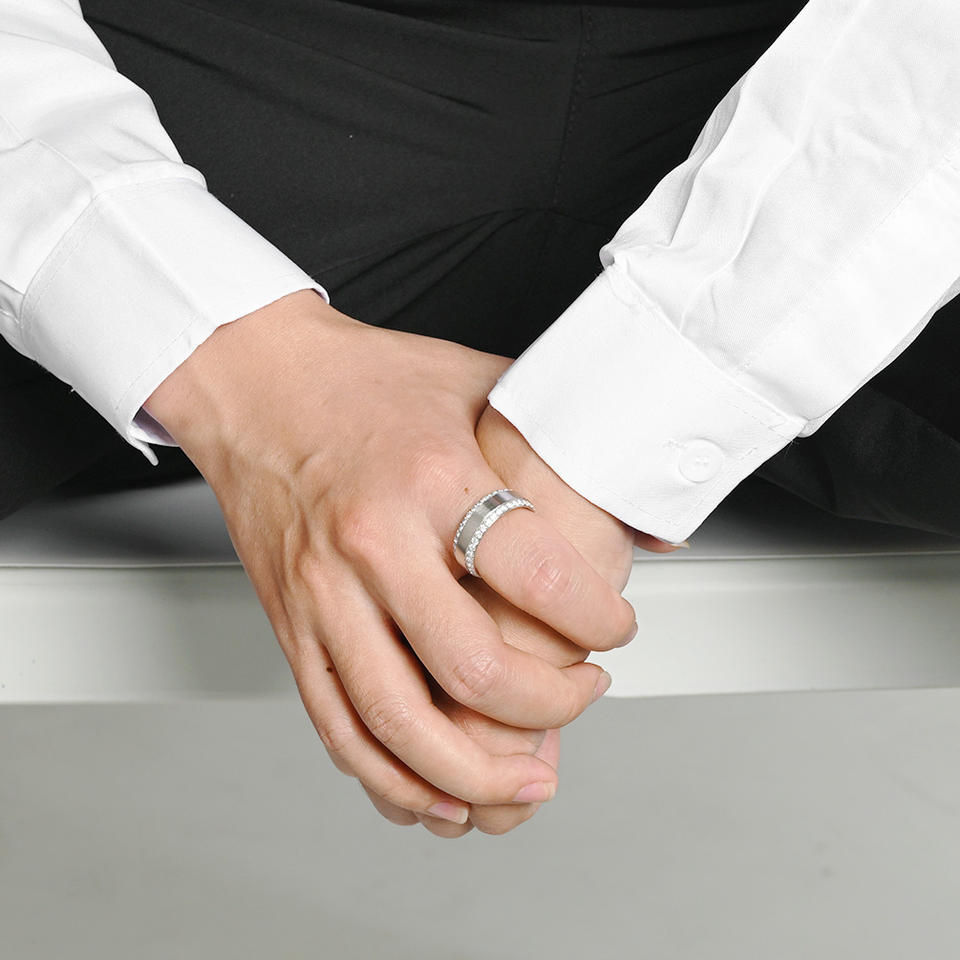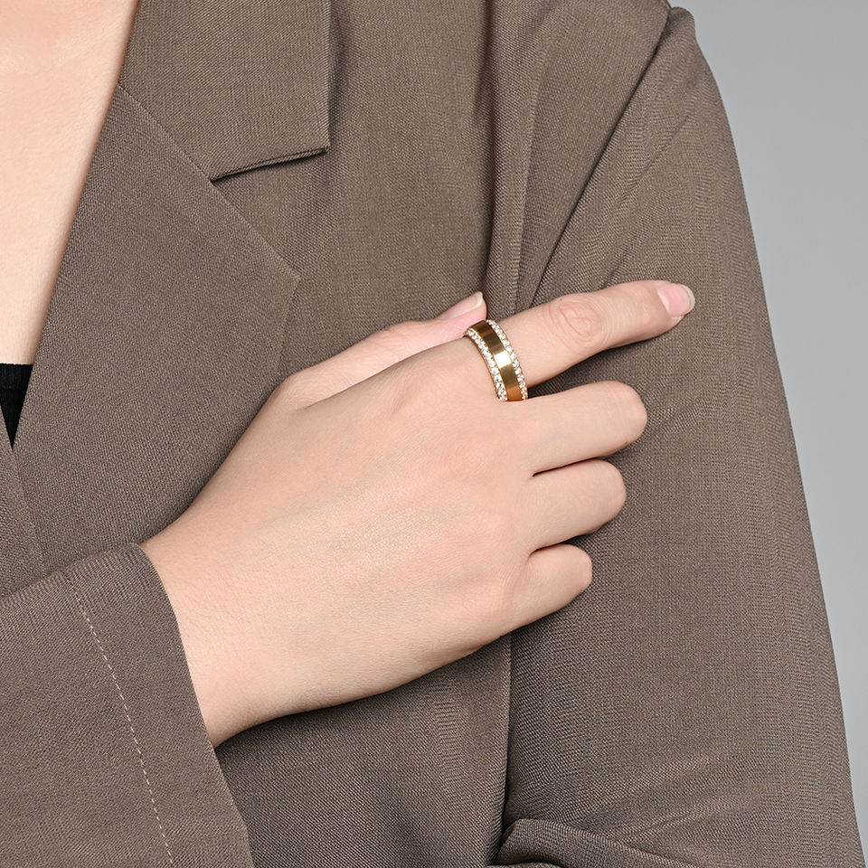 Anello Chunky Personalizzato OEM in Oro 18K PVD con Bordi in Cristallo Micro Pave, Gioielli Minimalisti per Coppie
