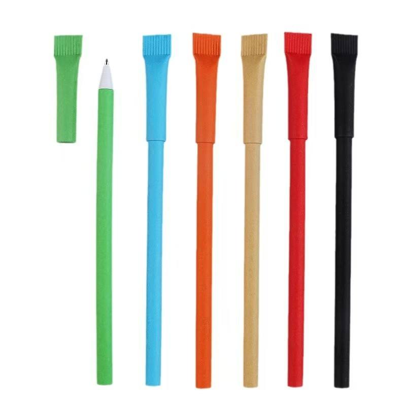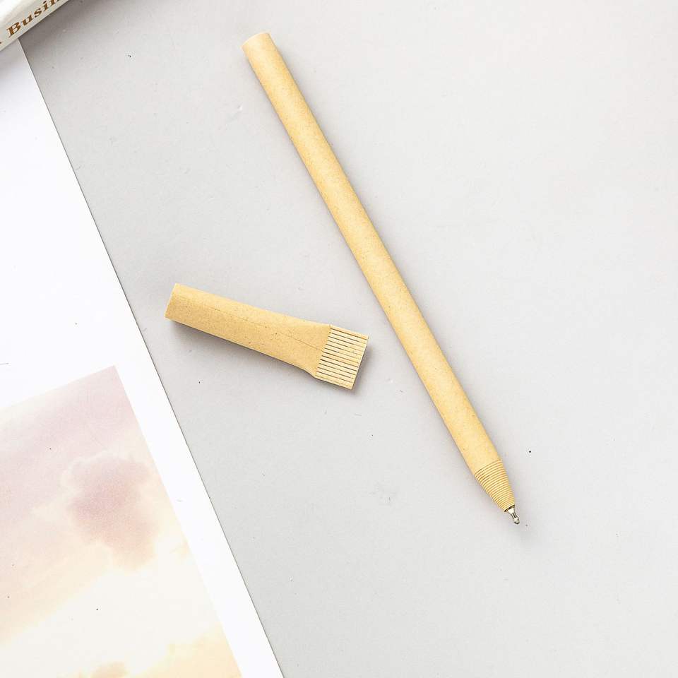 OEM Custom Hotel Logo Eco Friendly carta Kraft penna a sfera nero Biro rotolamento riciclato Branding per forniture alberghiere