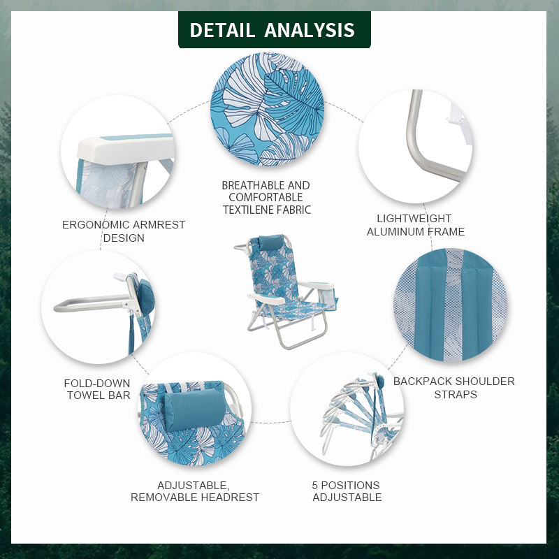 Sedia da Spiaggia Portatile Leggera Pieghevole Bassa Regolabile Reclinabile per Adulti con Logo Personalizzato OEM