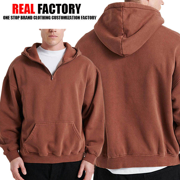 OEM Custom Quarter 1/4 Half Zip Pullover Drop Shoulder Blank Heavyweight 100% Cotton 320GSM Oversized Fleece Men's Zip up Hoodie