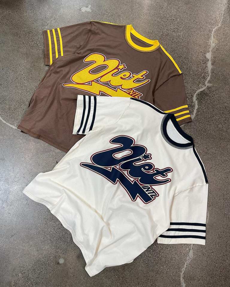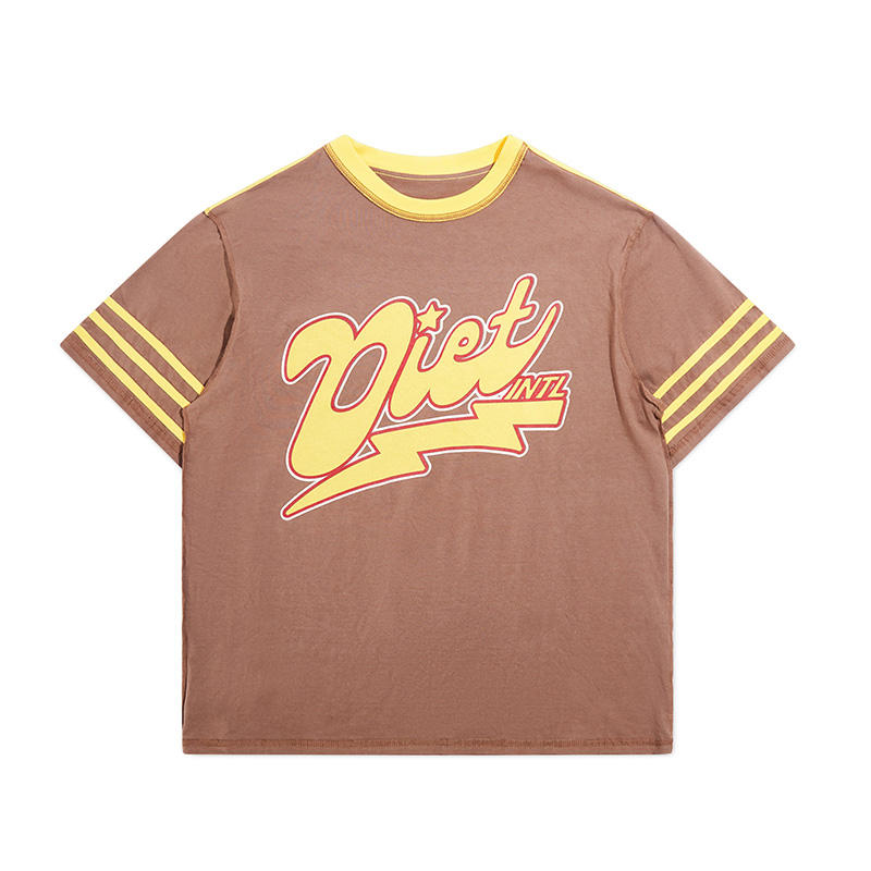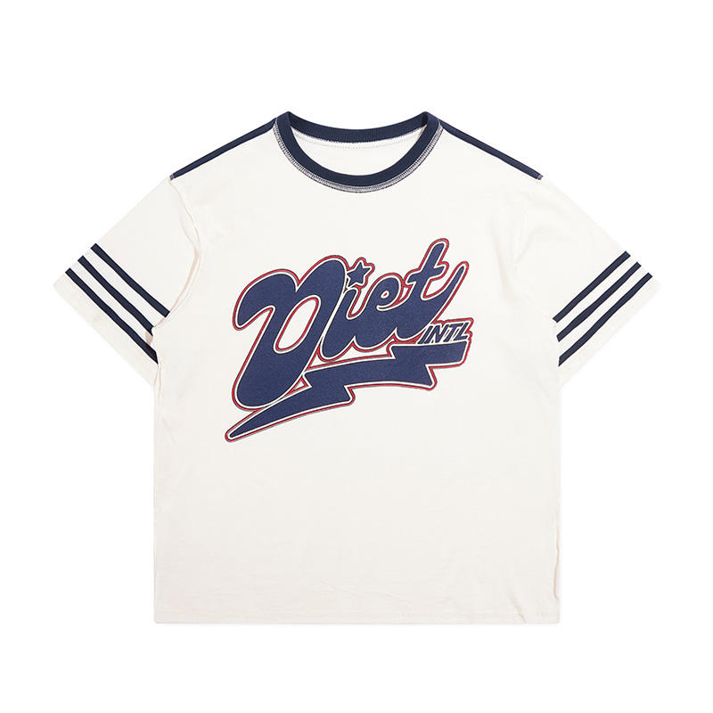 T-Shirt Personalizzata OEM con Stampa Serigrafica, Maniche a Righe e Cuciture Inverse, Effetto Sbiadito al Sole