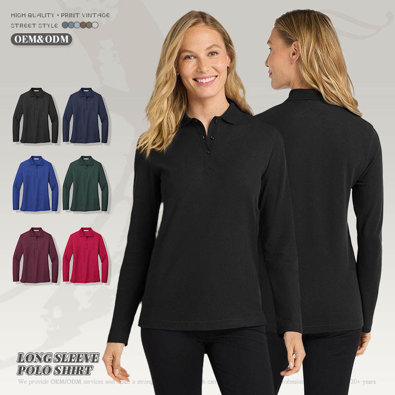 OEM Custom Wholesale 100% Cotton Womens Long Sleeve Polo Shirt Spring and Autumn Knitted Fabric Long Sleeve T-shirt Polo Shirt