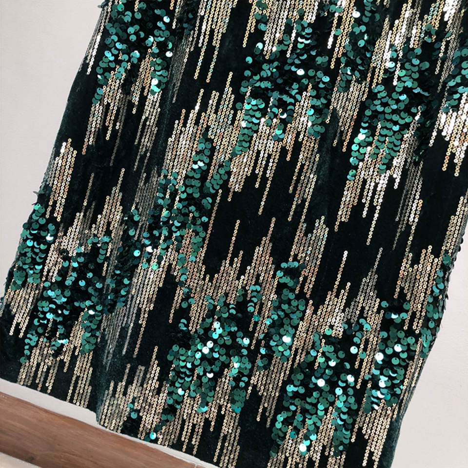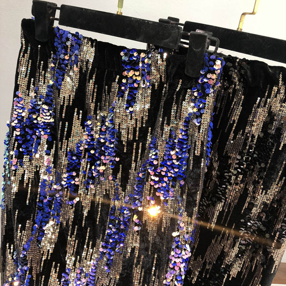OEM Custom Women's Midi Velvet Skirt with Full Sequin Bodycon Glitter Elastic High Waist Sparkly Skirts Party Outfits
