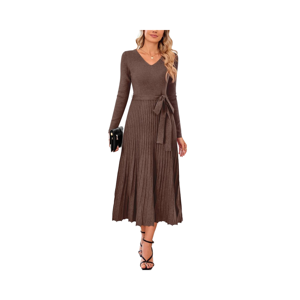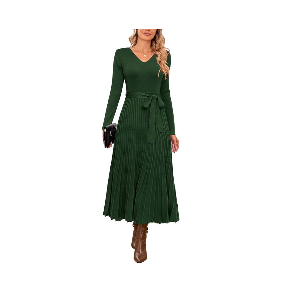 Abito Maglione Autunnale da Donna a Maniche Lunghe in Maglia, Personalizzato OEM, con Pieghe e Cintura in Vita, in Misto Lana Stile Europeo e Americano 2026
