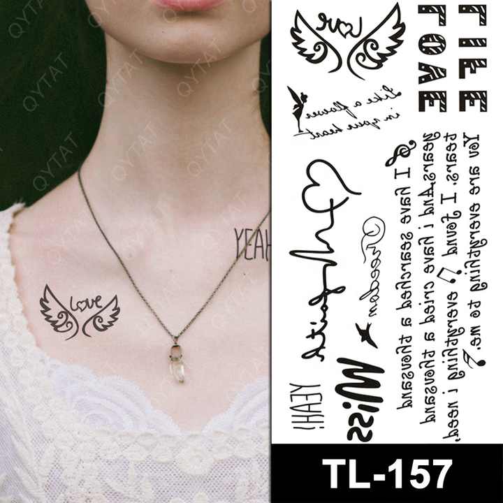 Adesivi per Tatuaggi Temporanei Personalizzati OEM Ecologici a Base d'Acqua per Corpo, Braccia, Mani, Piccole Parole, Lettere dell'Alfabeto a Prezzo Conveniente