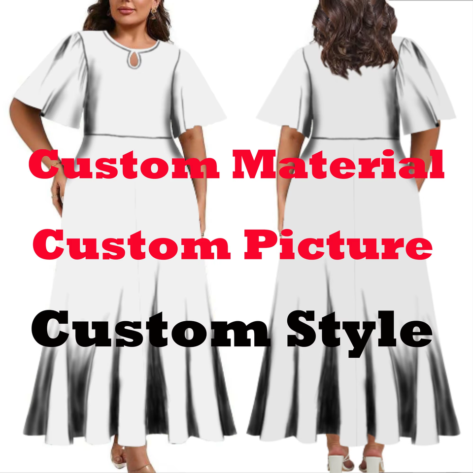 OEM customed Pacific Design a mezza manica svasata abito lungo plissettato con Design a goccia d'acqua Maxi abiti Casual da festa da donna