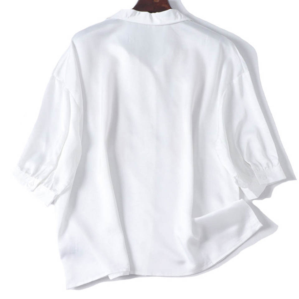 OEM Customized Women's Blouses White Short Sleeve V-neck Shirts With Golden Sequin Wings Button Down Casual Tops Summer Outfits