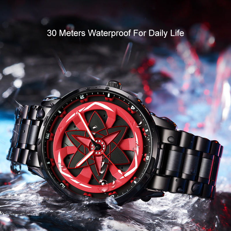 Orologi da Uomo al Quarzo OEM/DOM: Design Cerchione Auto Sportiva, Impermeabile, Stile Anime Ninja, per Uomo