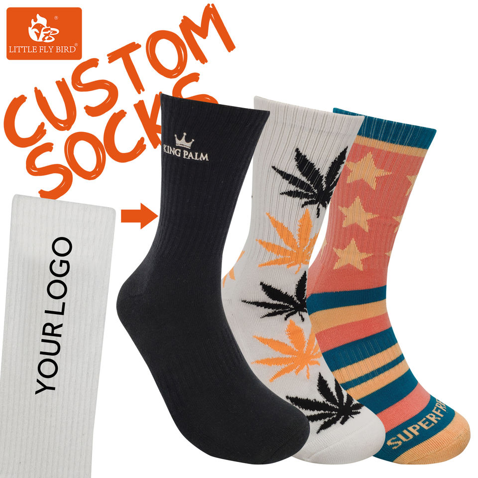 OEM Design Your Own Fancy Novelty Embroidery Sock Men Pattern Logo Chaussettes Customize Cotton Unisex Crew Logo Socks
