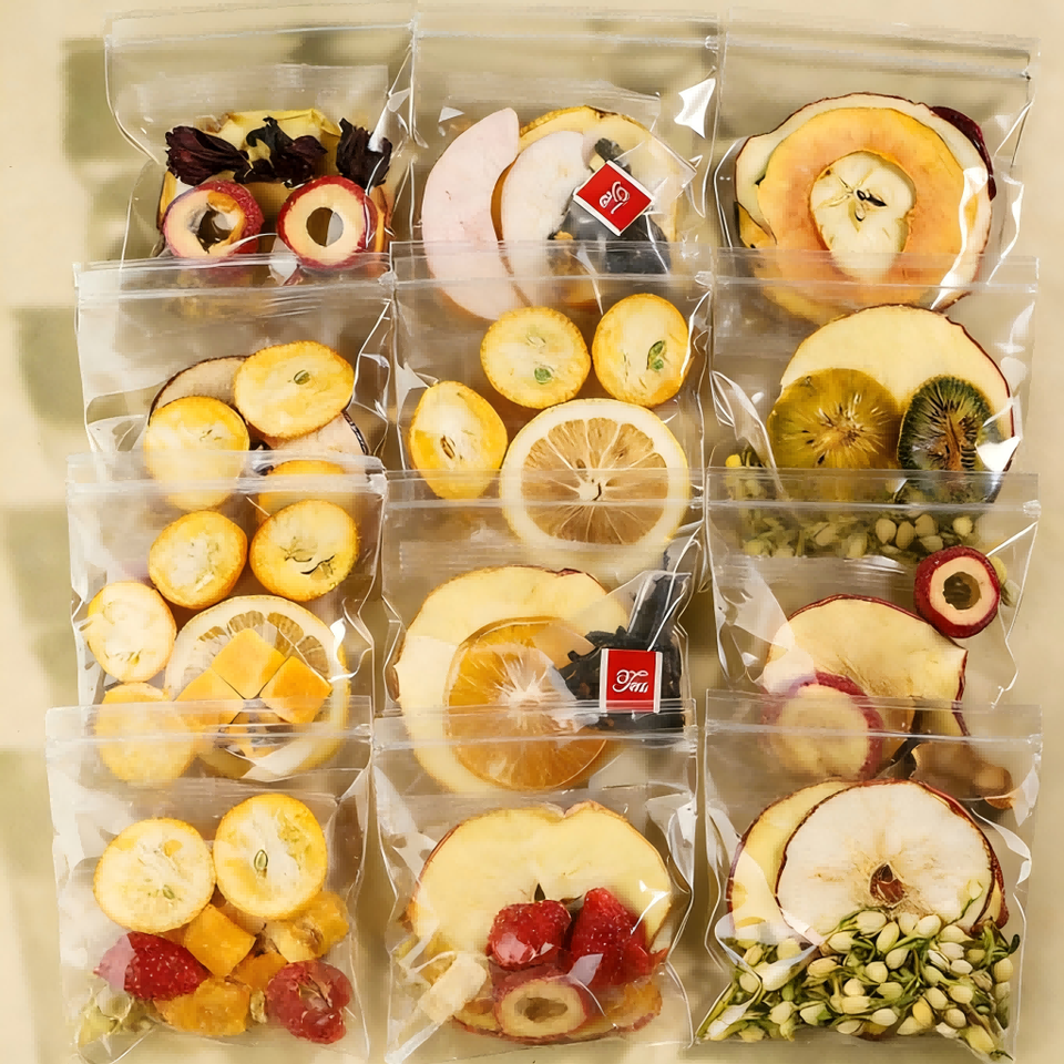 Tisane OEM di Alta Qualità per Marketing Diretto: Bustine di Tè Fresco, Infuso a Freddo, con Fette di Frutta Essiccata e Combinazione di Erbe Aromatiche
