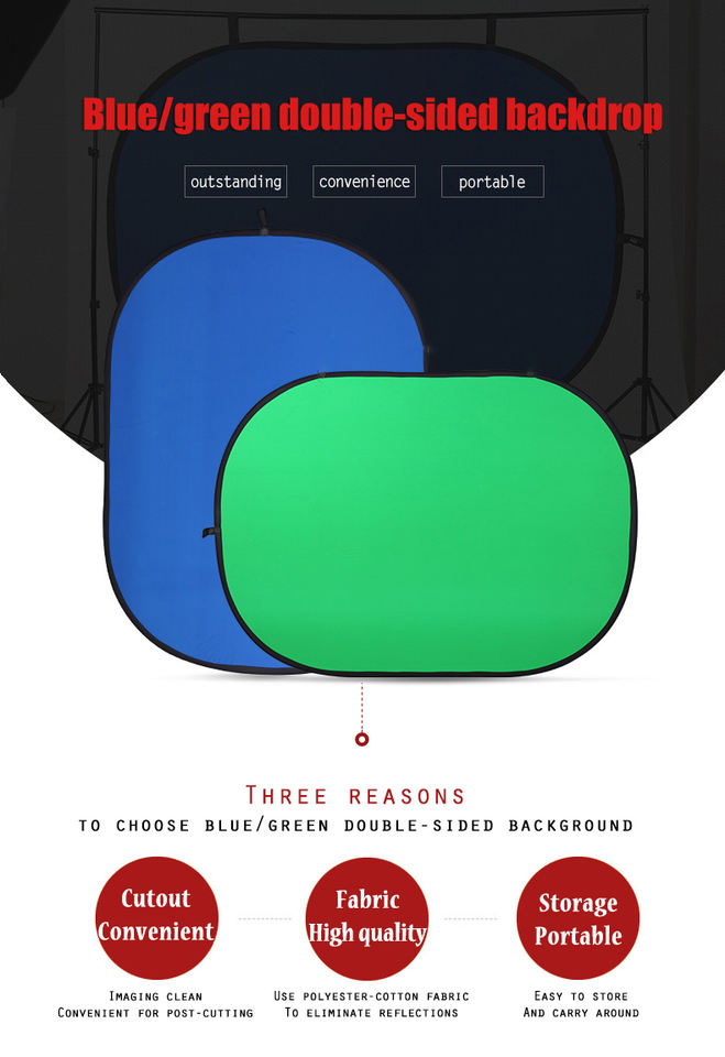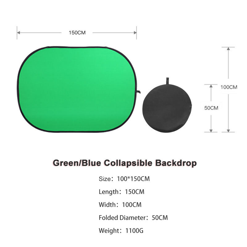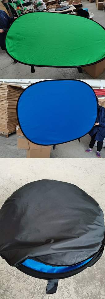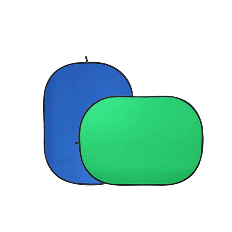 Sfondo Fotografico Pieghevole Bifacciale OEM in Poliestere Cotone Verde Blu, Morbido e Trendy, Forma Ovale 100x150cm